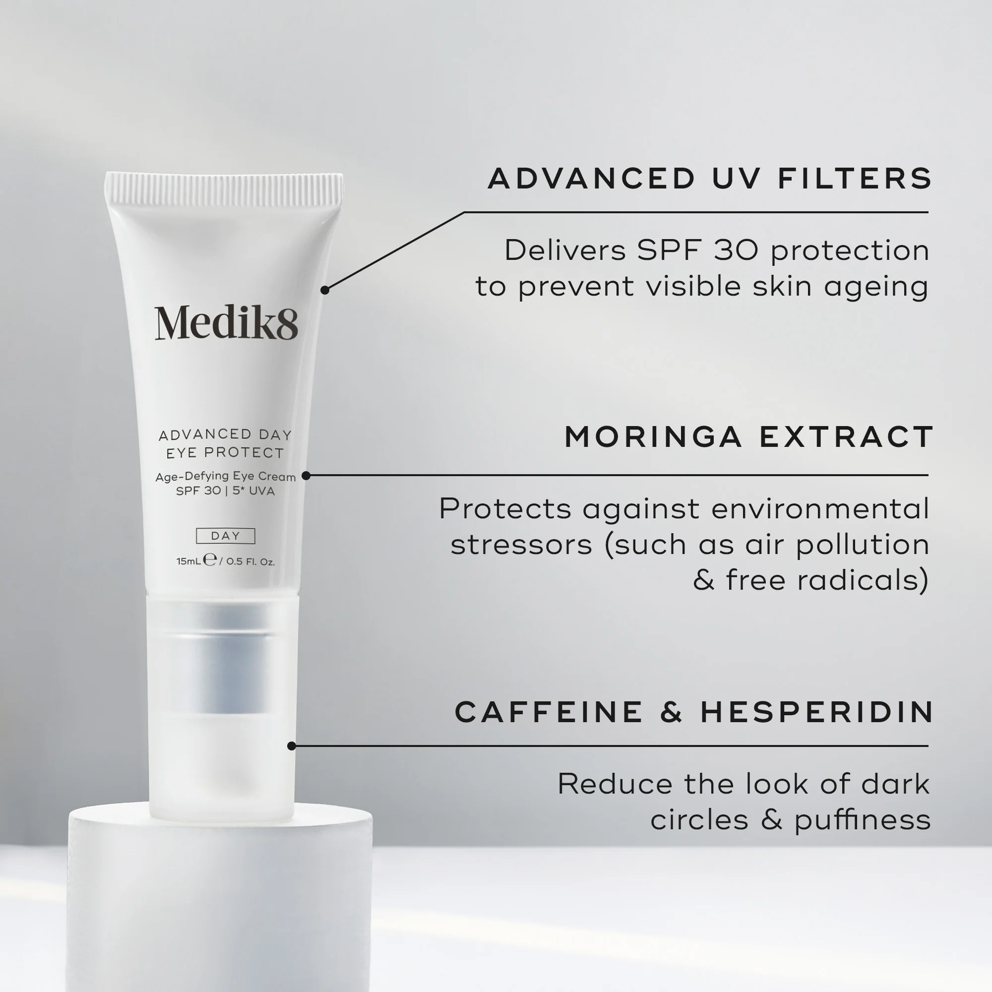 Advanced Day Eye Protect provides SPF 30 5* UVA protection to shield the delicate eye area from the damaging and ageing effects of UV rays and environmental stressors.